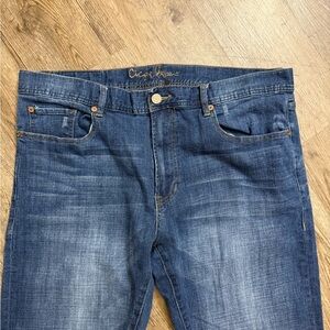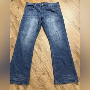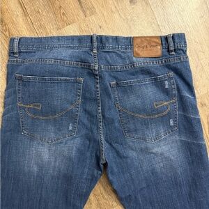 In excellent condition. No issues but the material tag is frayed off on the inside. Does have some stretch. Size 38x32