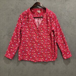 Chip + Pepper California Top Womens M 3/4 Roll Tab Sleeve Pink Palm Tree Resort