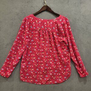 Chip + Pepper California Top Womens M 3/4 Roll Tab Sleeve Pink Palm Tree Resort
