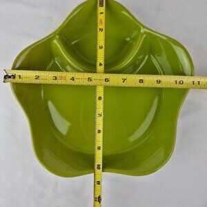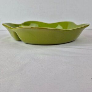 Chip and Dip Platter Bowl by Petals by Chantal. Bright lime green chip and dip serving bowl/platter. Fun curvy shape. Microwave, dishwasher, freezer and oven safe. Retro vibes. Stoneware. Preowned with some tiny marks which won't show once filled with your favorite foods. Please see picture for approximate measurements. Snacks, chips, dips, veggies, potluck, outdoor parties, BBQ's.