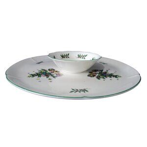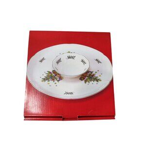 Chip and Dip Tray Happy Holidays Christmas Vintage Tree Pattern Nikko Japan