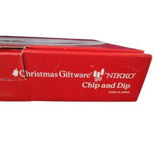 Charming vintage Christmastime Happy Holidays tree pattern by Nikko. Chip and dip set, two piece. Can be used as a small bowl and tray separately. Made in Japan, comes in original box and gently used. Has security label 531635 and 35 affixed to bottom. Shows Minor Wear Consistent With Normal Use, Display and Storage. Minor Utensil Marks, Minor Bottom Wear. No Chips, Cracks or Crazing. May Show Minor Defects in Manufacture and Decoration. Box shows wear and tear.