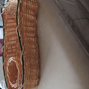 Chip and Dip Wicker Basket w/ ceramic Fish Handles