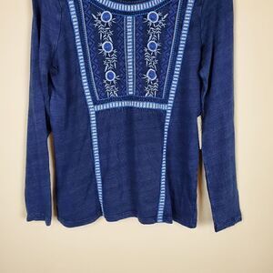 Chip & Pepper Indigo Blue Embroidered Long Sleeve Top