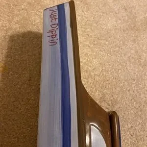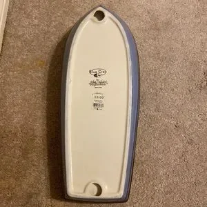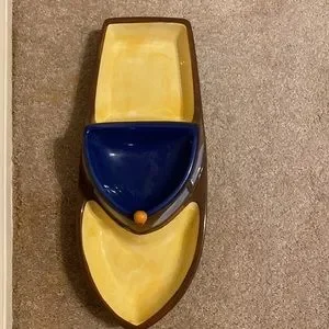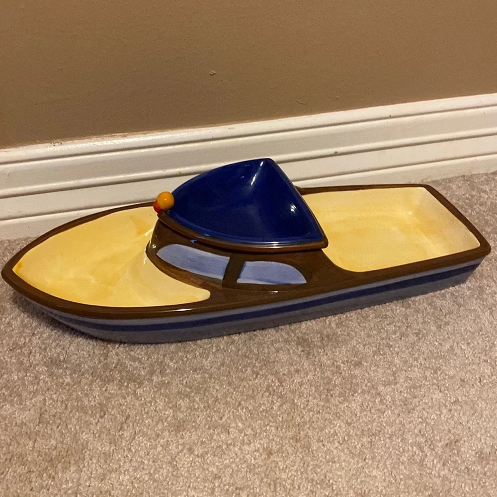 Ceramic boat chip & dip server. Yellow, blue & brown. NWT