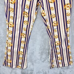 Details: 5 pocket design, all over print, emboridered detailing on back pocket, velvet generation tab on back hem, flared.