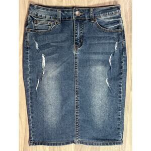 Chiqle Denim Architect Women’s Distressed Blue Denim Pencil Skirt Sz M