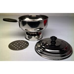 Unused in the original box. This puttu maker is for use with a pressure cooker. All Stainless Steel.