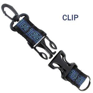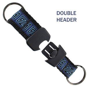 2 piece keychain with blue maze like design. Comes in clip style or double header style. Clip style length: 6.5 inches. Double header style length: 5.25 inches. This is a unisex item