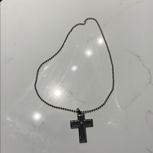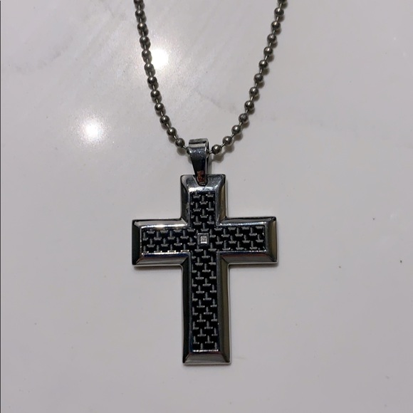 Diamond stainless steel black cross necklace. Never been worn. Have the box but it’s at my parents house. Just ask and I’ll get you a picture when I go there next time. And I will be sending it in the box