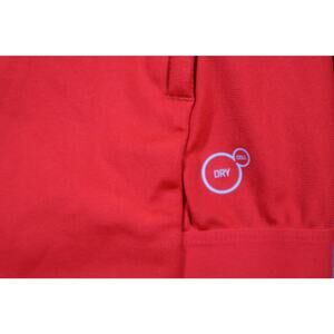 Color: Red with navy/black diagonal stripe pattern on sleeves