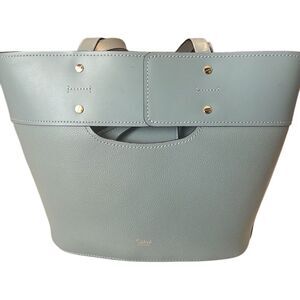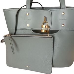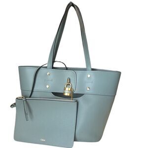 Chloé Aby Blue Leather Gold Lock and Key Attached Pouch Handbag Tote with COA
