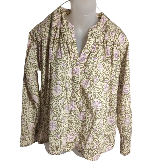 Chloé Beige Pink Floral Print Blouse Long Sleeve Button Front Size 34(0-2)