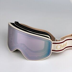 Chloé CH0072S 001 – White Beige Ski Mask Sunglasses with Violet Mirror ZEISS Lens