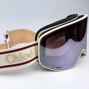 Chloé CH0072S 001 – White Beige Ski Mask Sunglasses Violet Mirror ZEISS Lens