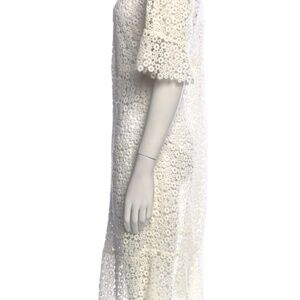 Mainline Chloé dress in ivory eyelet. Flutter sleeves, scoop neck, knee length.