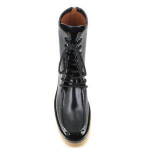 Black soft leather lace-up boots from Chloè, featuring by a zip on the back. Honey-colored rubber sole. Lined interior. Heel: 5 cm