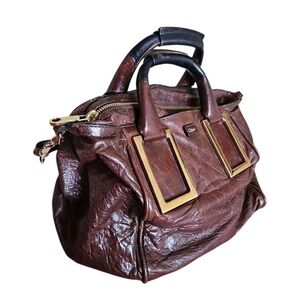 Chloé LARGE Ethel Brown Leather Handbag, Gold Accents, Removable Crossbody Strap