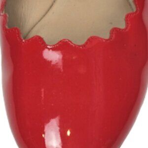 These Chloé Lauren flats are crafted from glossy red patent leather and feature the brand’s signature scalloped edge. With a round toe, low heel, and soft leather lining, these are a versatile and polished option for everyday wear. The bold red patent adds a modern pop of color to this timeless silhouette.