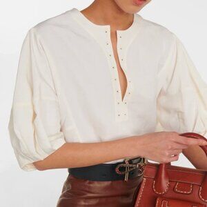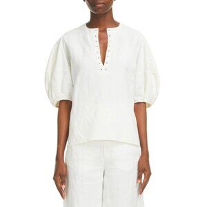 This is a beautiful Chloé Linen And Silk Canvas Top In "iconic milk" White from Spring 2021. It has never been worn but does not have tags. The balloon sleeve is shaped with darts and is lovely when on body.