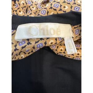 Chloé Pleated Patterned Silk Back Dress Size Large