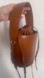 Beautiful Chloé Sense leather bucket bag in caramel brown color, calf leather logo-embroidered handle top drawstring fastening main compartment linen lining internal logo patch adjustable shoulder strap