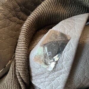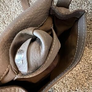 Signature leather saddle bag with tassel trim - grey leather with gold hardware. Gently used but in good condition. As pictured.