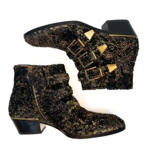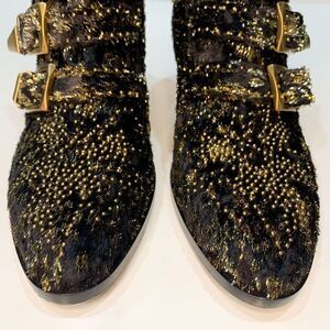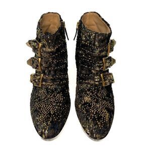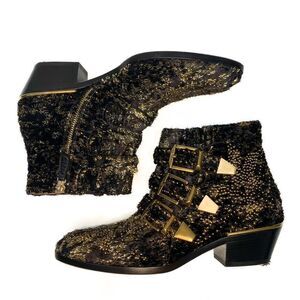 Chloé Susanna Ankle Boot EU 37 US 7 Black Velvet Studded Bootie Buckle Strap