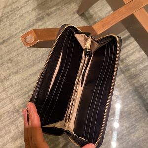 Full size Cholè wallet with gold hardware. Wallet has 8 card holders, 1 zip up pocket, 2 large pockets.