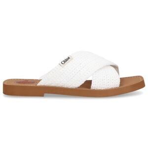 Designed for effortless elegance, these Chloé Woody flat slides blend artisanal craftsmanship with everyday comfort. Handcrafted from knit fabric, they feature wide crocheted crisscross straps adorned with the brand’s signature logo detailing. A rubber sole ensures durability, while the slip-on design makes them an easy choice for warm-weather styling.