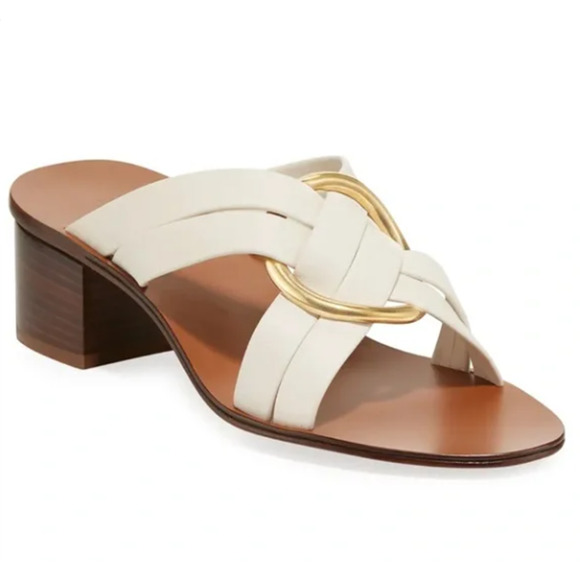 Chloé Women's Rony Ivory Crisscross Block Heel Sandals Italy - 39EU / 8.5US