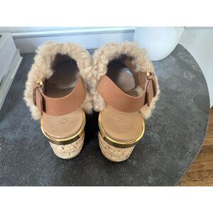 Chloé camille leather-trimmed shearling platform slingback sandals 37