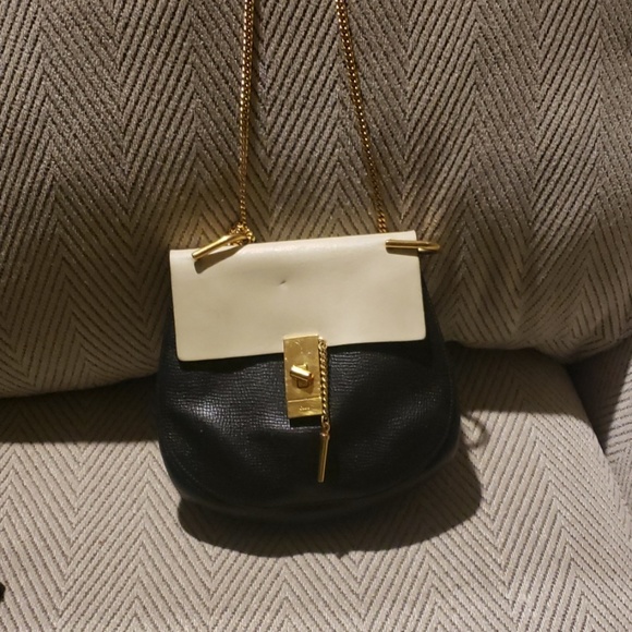 Lambskinleather black and tan gold chain bag