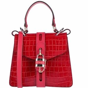 Croc embossed leather with twill fabric lining and polished gold-tone hardware. Made in Italy. Measures approx 9.5"W x 8"H x 4"D. Handle measures approx 11" in length with a 5" drop. Adjustable and detachable shoulder strap measures app