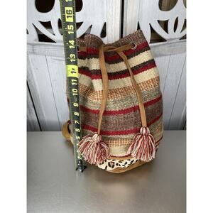 Chloe And Lex Striped Wool & Suede Bucket Backpack Bag Calf Hair