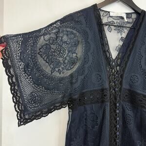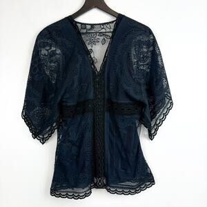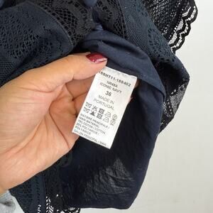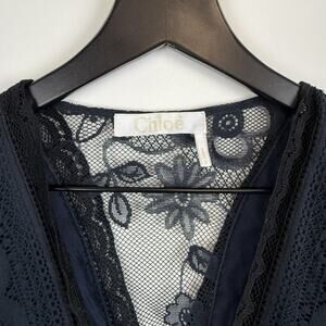 Chloe Angel Sleeve Lace VNeck Button Front Top Blouse Iconic Navy Blue - 36