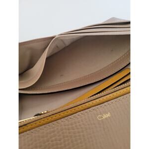 Chloe Auth Geniue Leather Folding Wallet Beige Clutch Logo Large Phone Designer