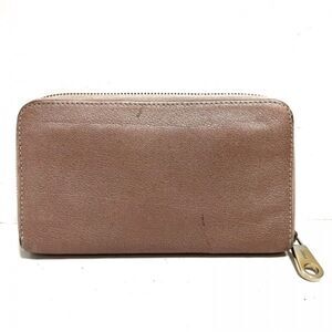 Chloe (Authentic) Pink Champagne Leather & Gold Bow Accent Zippy Long Wallet