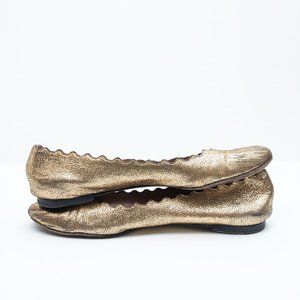 This pair of Chloe ballerina flats famous for it's distinguishable scallop design have seen better days. Has lots of life left but I would suggest looking at the photos. The price will reflect the state of this shoes. Soles are worn.