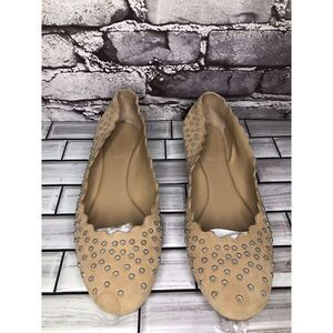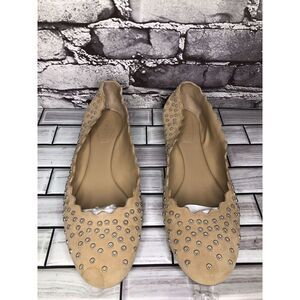 Chloe Beige Suede Leather Scalloped Perforated Stud Ballet Flats Women Sz 40EU/9