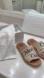 Stylish Chloe sandals with logo strap. Beige and black design. Perfect for casual wear.
