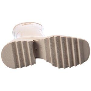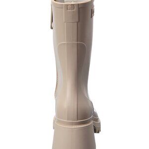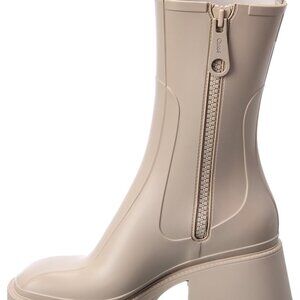 The voluntarily oversized back loop shows the Chloé logo, while an internal zipper closure ensures a fitted, feminine silhouette. Short and flat, the square toe shape lends a strong, assertive attitude. The comfortable heel elevates the silhouette, while the bold lugged sole gives an edgy attitude to this rain boot.