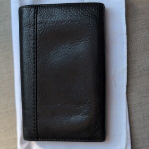 Snap closure. 5 card slots. Inside zip pouch. Bill slot. Compact bifold.