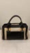 Stylish black leather bag featuring a gold zipper. Perfect for any occasion.