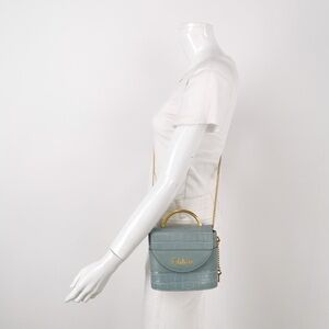 Chloe Blue Croc-Embossed Mini Bag with Gold Accents