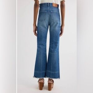 High-rise bootcut jeans in waterless denim with a raw hem. Perfect, no flaws.