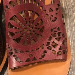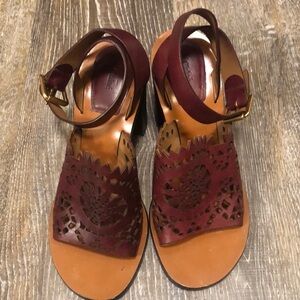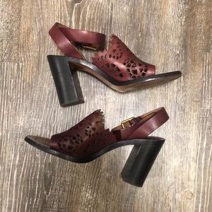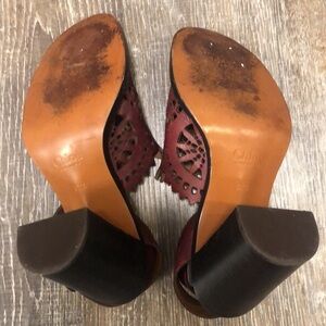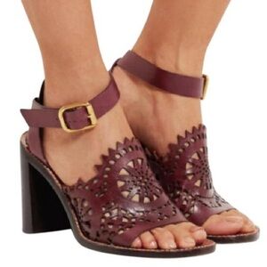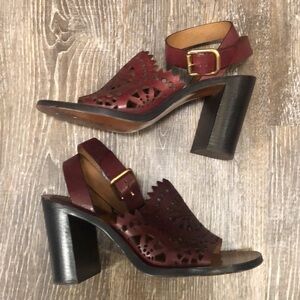 Chloe Bordeaux Kelby Laser Cut Block Heel Sandals