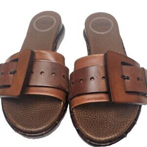 Chloe Brown Leather Slides with Oversized Buckle | Size 35