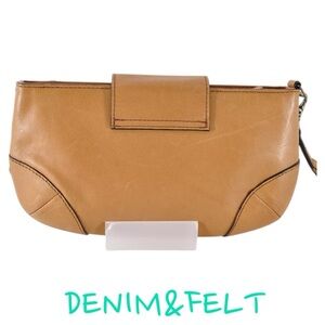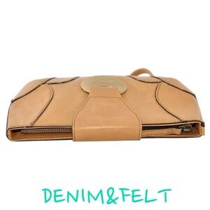 Chloe Brown/Tan Leather Gold Logo Top Zip Womens Clutch/Wristlet/Wallet PRELOVED