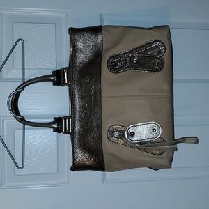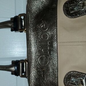 This bag truly makes a statement with large monogram font and oversized zipper pulls and so can you when you carry it.